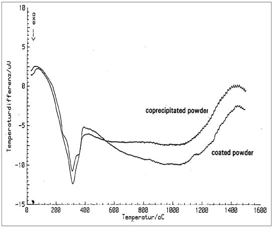 DTA-analysis of coprecipitated and coated yttria-zirconia composites.