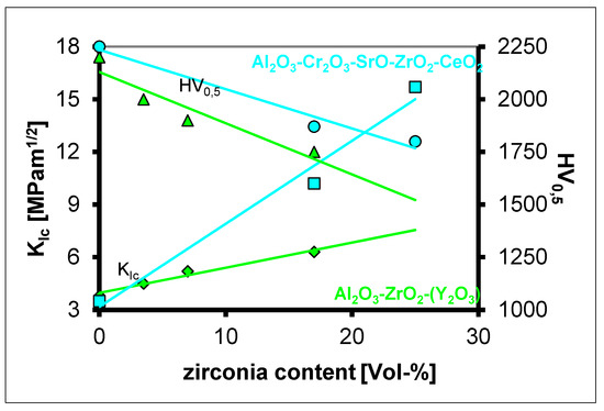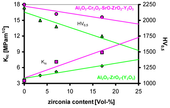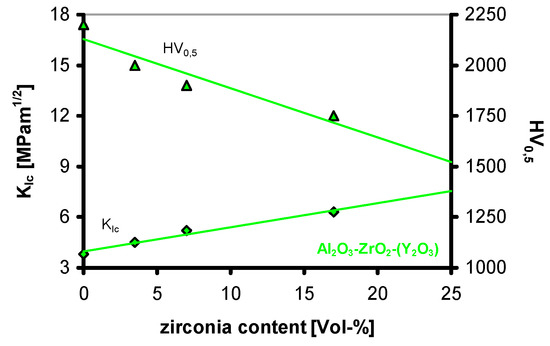 - Claussen, N. Fracture toughness of Al2O3 with an unstabilized ZrO2 dispersed phase. J. Am. Ceram. Soc. 1976, 59, 49. [Google Scholar] [CrossRef]