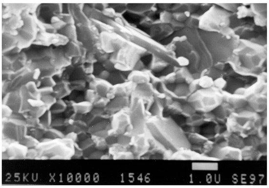 Compared to cubic stabilized zirconia, which only has a mechanical strength of about 200–250 MPa and is very brittle, the Mg-PSZ grades show strength levels of 500–750 MPa. However, in the case of tetragonal precipitates being close to the critical coherence size, the material can only be used at room temperatures. In the event elevated temperatures are required in the application, the size of the precipitates has to be reduced and therefore the mechanical strength goes down to about 500 MPa. However, in this case the materials can be used up to about 800 °C. Due to its unique microstructure with its coarse grain-size, it fractures trans-granular at a high Weibull modulus of up to 25 (see Figure 10) [22].