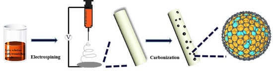 Schematic illustration of the synthesis process of the NixFey@C-CNFs.