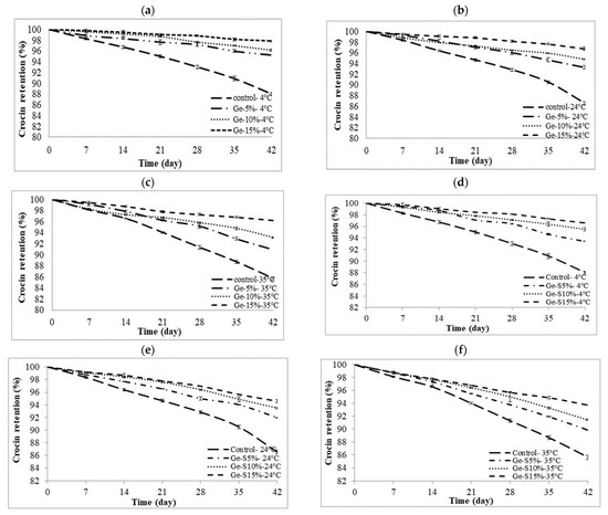 3.5. Storage Stability of Encapsulated Saffron Extract