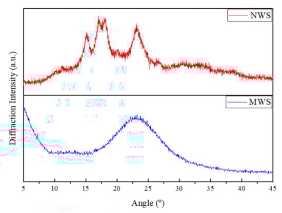 X-ray Diffractometry spectra of NWS, and MWS starch samples.