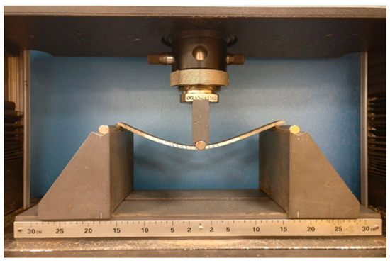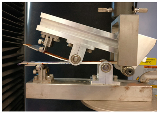 Unlike the Mode I test, which was basically a tensile test, Mode II is a flexural test (3-point bending). The test was performed conforming to ASTM D7905. A uniform displacement rate of 2 mm/min was set for all the specimens to ensure steady crack propagation. Figure 7 shows the ENF specimen under the Mode II test.