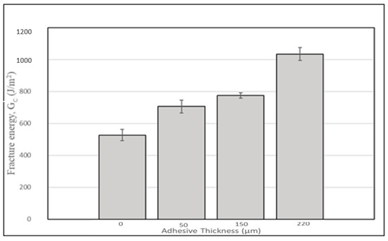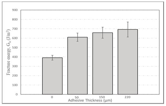 Effect of interleaving film thickness on the fracture energy in Mode I.