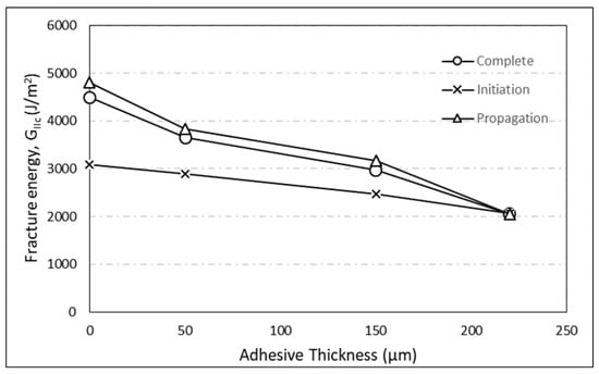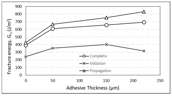 As evident from Figure 18, both the initiation and the propagation fracture energies decreased with the increase in interleaf thickness.