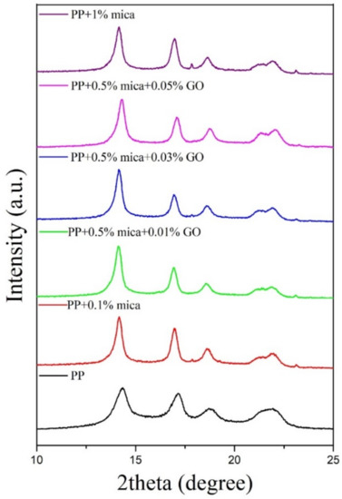 3.2. Graphene Oxide/Mica/Polypropylene Composites