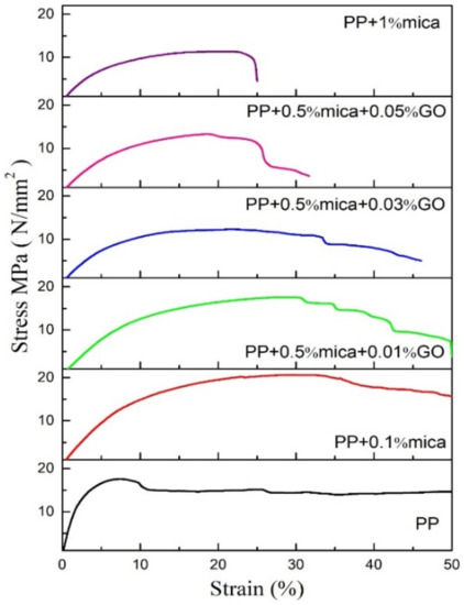 3.4. Tensile Test of Graphene Oxide/Mica/Polypropylene Films