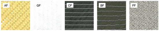 Five types of fabrics made of different fibers, such as aramid (AF), glass (GF), carbon (CF), basalt (BF), and flax (FF), have been used for manufacturing of epoxy-based laminates. The mechanical properties of used in this study fibers are presented in Table 1.