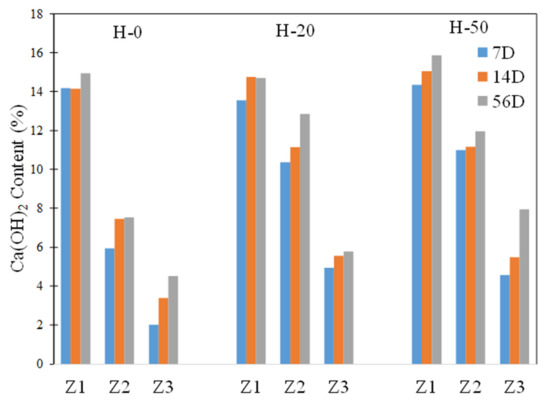 Figure 8. Ca(OH)2 content in zones, Z1, Z2, and Z3, surrounding the hydrogels.