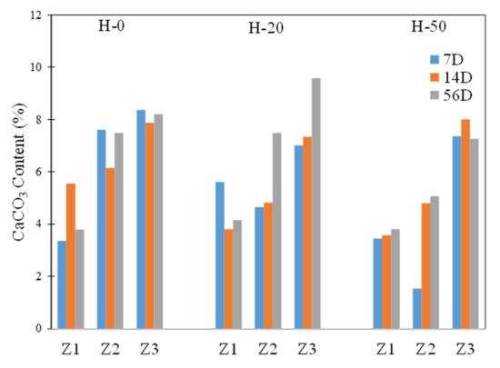 Figure 9. CaCO3 content in zones, Z1, Z2, and Z3, surrounding the hydrogels.