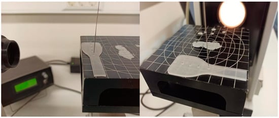 Aluminum moulds were used to generate two different geometries used for each test. Firstly, for the tensile, spectrophotometry, and wettability tests, an aluminum mould was used, and the geometry was chosen following ASTM D412 [51], with a thickness equal to 2 mm.