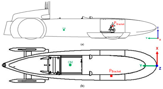 Using Solid Edge ST10 software from Siemens [25], the prototype was designed, and the weight of 110 kg was obtained. Subsequently, it was possible to estimate the center of mass (CM) of the prototype system plus the pilot, and also the position of the contact point between the bracket and the remaining steering system (PBracket) (Figure 3).