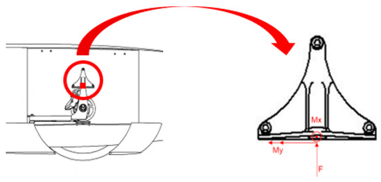 A scheme of the considered applied loads into the bracket wheel hub are presented in Figure 4 and the applied loads are presented in Table 2.