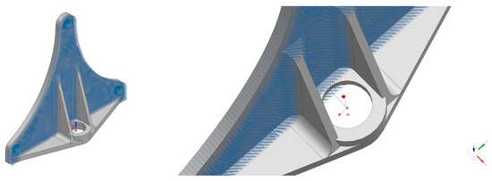 Mesh of the three separate zones on FEM of the BFRP wheel hub carrier bracket.
