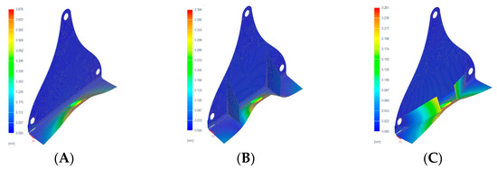 Geometry A, as the starting point of this study, was considered due to be simple and easy to be manufactured by the hand-lay-up composite’s technique. However, a high deformation compared to the original bracket, occurred in the base of the component.