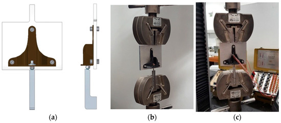 Since the universal testing machines execute mainly tension/compression movements, it was necessary to design and machine an experimental setup fixture in order to carry out the experimental test to reproduce the real conditions including the camber angle of 10° (Figure 14a). The experimental tests were performed in a universal testing machine—Instron 5566 with a 10 kN load cell (Figure 14b,c).