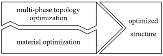 In this work, a hybrid structure made of cFRP in combination with a sFRP is to be optimized. Even for the consideration of several materials with different stiffness, approaches are known []. A multi-phase optimization algorithm based on Bidirectional Evolutionary Structural Optimization (BESO) [] is presented in Section 6.