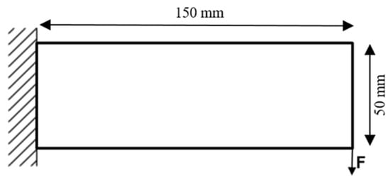 To demonstrate the effect of considering anisotropy and stiffness of different materials the algorithm shown in Figure 7 and described in Section 7 is implemented in Abaqus using a Python script. A classic example is used to visualize the effects. A cantilever beam clamped on one side under vertical force load as displayed in Figure 9 serves as an example problem. The design space has a length of 150 mm and a height of 50 mm.