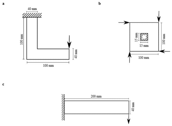In order to evaluate the proposed method for different geometries and load cases, comparative calculations are carried out for the problems shown in Figure 10. In each case, the results of an isotropic topology optimizer are compared with those of the anisotropic and hybrid optimizer.