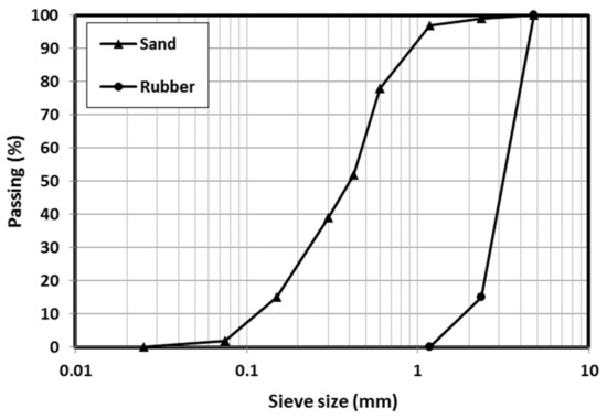 Sieve analysis of sand and rubber used.