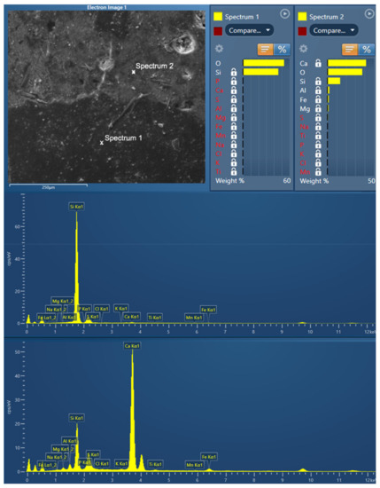EDS analysis for the identification of conventional aggregates in the mortar samples.