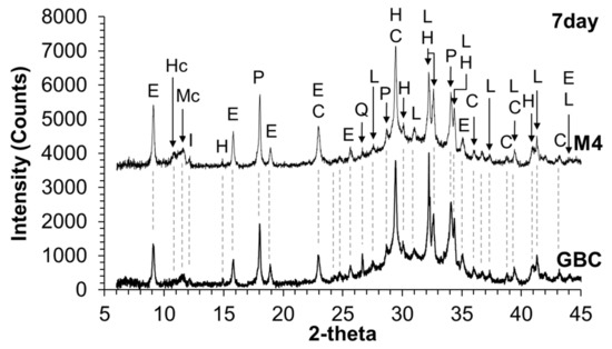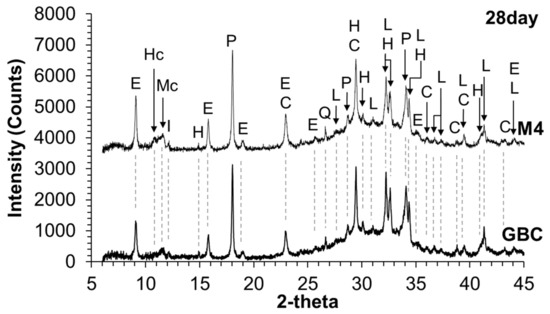 X-ray diffractograms of hydrated GBC and M4.
