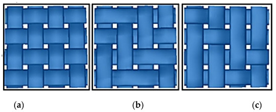 Schematic representation of weave pattern: (a) Plain; (b) Twill; (c) Satin.