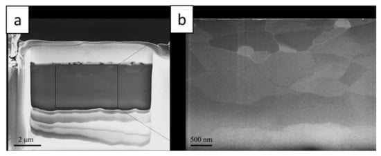 Focused ion beam. (a) Aluminum–TiB2 nanocomposite sample sheet prepared by FIB. (b) High-magnification SEM images obtain from the rectangular box (from a) vividly showing the ultra-fine-grain aluminum.