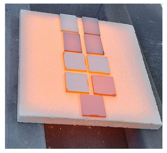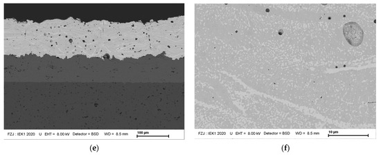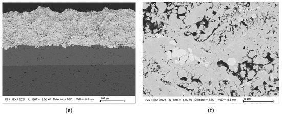 As substrates, two different materials were taken—a fibre-reinforced oxide/oxide CMC called UMOXTM with Nextel 610 Alumina fibres and a matrix produced from submicron mullite particles and polysiloxane precursor [21]. In addition, EBC/Si systems were deposited onto roughened α-SiC substrates Saint Gobain Ceramics, Niagara Falls, NY, USA, [22]) with the dimensions of 25 × 25 × 5 mm3. The SiC samples were ultrasonically cleaned before spraying. The mechanical pretreatment was carried out with 80-grit sandpaper or by grit blasting with F 36 SiC powder.