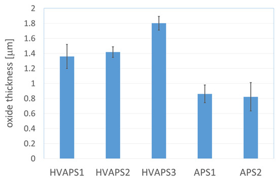 Figure 8. Thickness of the oxide layer after 5 × 20 h cycles at 1300 °C for the different coatings.