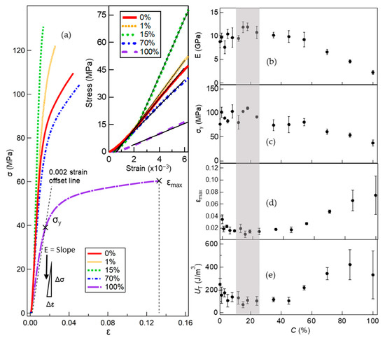 | Solvent | Young’s Modulus (GPa) | Tensile Strength (MPa) | Elongation at Break (%) | Crystallinity Index (%) | Reference |