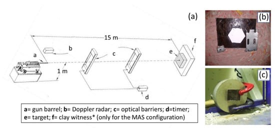 Ballistic test (a) schematic illustration; (b) MAS target placement, and (c) individual performance target placement.