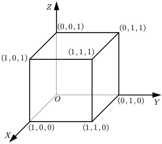 where we regard this as the spatial vertex set with the dimension l. When l = 3, it becomes a three-dimensional cube.