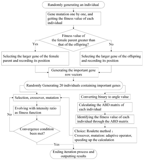 Once the “hyperplane” is determined, it is possible to locate the gene value of the corresponding position after confirming that the gene value of some gene position is valid, thereby reducing the search range and further reducing the computational workload. The specific process of the IGA is shown in Figure 4.