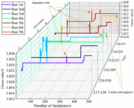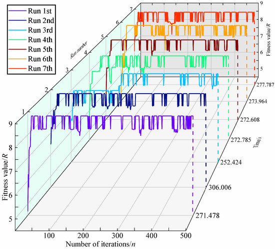 In an optimisation process, the communication of individuals between populations is not a complete fusion, but on the basis of absorbing each other’s excellent genes and simultaneously ensuring that their own excellent genes are preserved. Therefore, individuals need to use different crossover rates and mutation rates . Furthermore, the values of and also affect the global and local search capabilities and lead to different optimisation results; empirically, researchers recommend to adopt a large value of and small value of . Here in this article, the two probability factors are specified as 0.95 and 0.005, respectively. The specific parameter settings related to the genetic algorithm are detailed in Table 2.