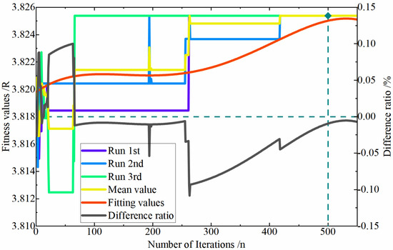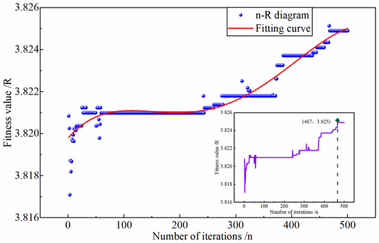 In the genetic algorithm, fitness is used to evaluate the goodness of individuals adapting to the “environment”, thereby further weighing the degree to which individuals can reach or approach the optimal solution in the process of genetic evolution [22]. Therefore, the fitness function selected for this calculation is
