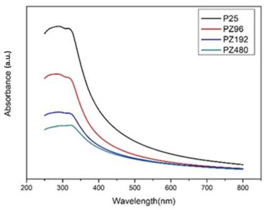 3.2.2. UV-Vis Spectrum of Various Ratios of P25/ZrO2