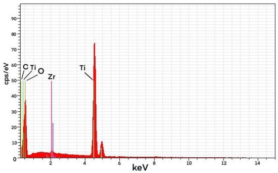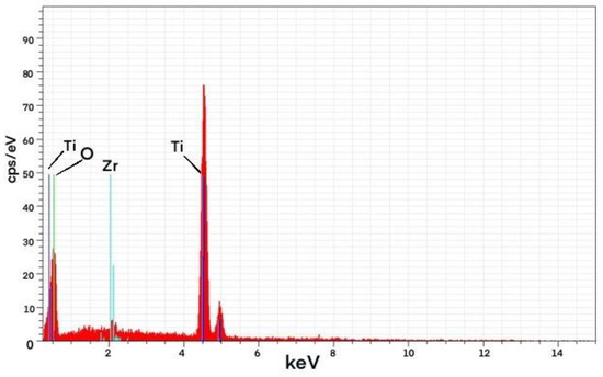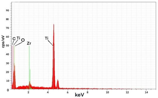 According to the results of the EDS analysis, the presence of Zr could be detected in the composite material as shown in Table 2, Table 3 and Table 4 and Figure 7, Figure 8 and Figure 9.