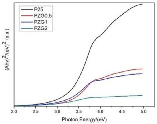 3.3.4. Energy Gap Analysis of P25/ZrO2/GO