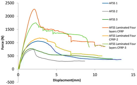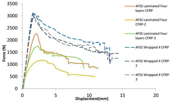 Load displacement curved of AFSS and AFSS wrapped around four layers CFRP.