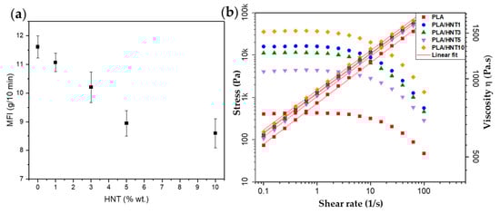 - Cobos, C.; Garzón, L.; López Martinez, J.; Fenollar, O.; Ferrandiz, S. Study of thermal and rheological properties of PLA loaded with carbon and halloysite nanotubes for additive manufacturing. Rapid Prototyp. J. 2019, 25, 738–743. [Google Scholar] [CrossRef]