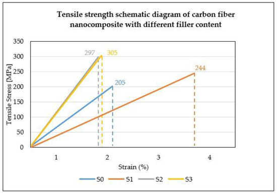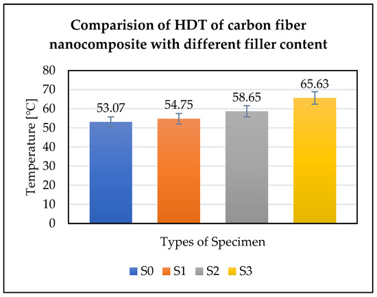 Significant enhancements were observed in the performed tests. Between 0 wt.% and 2 wt.%, the tensile strength, flexural strength, impact strength, hardness and HDT properties were increased by 17%, 39%, 32%, 14% and 21%, respectively, due to the addition of nanomaterials into the resin. Among the weight percentage of nanomaterials used, the 2% (S3) was the most effective by showing an impeccable increase in properties.