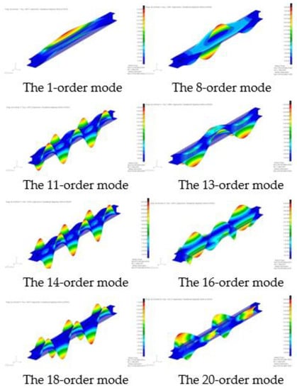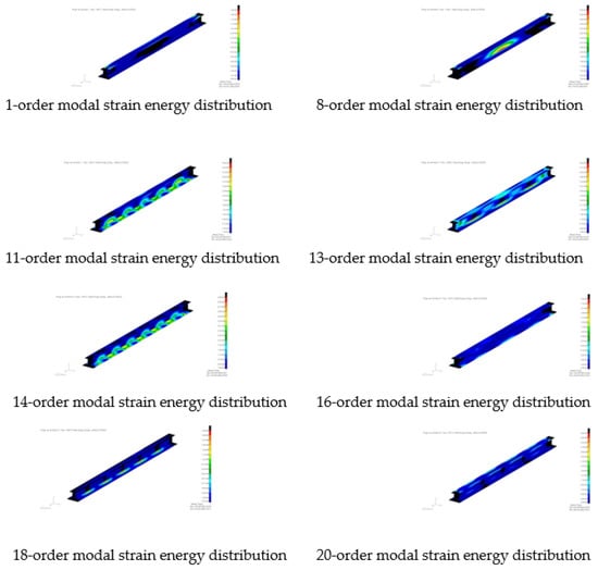 A typical modal strain energy distribution diagram is also extracted, as shown in Figure 8.