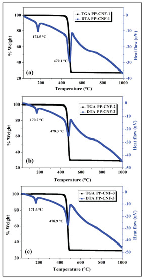 - Chatterjee, A.; Deopura, B.L. Thermal stability of polypropylene/carbon nanofiber composite. J. Appl. Polym. Sci. 2006, 100, 3574–3578. [Google Scholar] [CrossRef]
