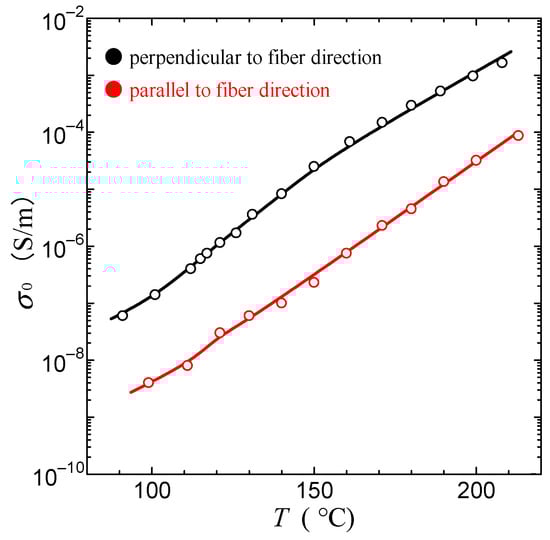 Figure 11 shows the temperature dependence of proton conductivities parallel and perpendicular to collagen fiber in the imidazole–collagen composite film (n = 2.0). As shown in Figure 11, proton conductivity perpendicular to the collagen fiber direction is approximately ten times higher than that along the collagen fiber.