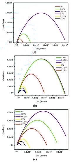For corrosion measurements, the samples were dipped in the 3.5% NaCl solution for 5 days. According to EIS measurements, the impedance of pure epoxy resin coating was 6.4 × 106 Ω·cm2 after 26 days (Figure 3). The inclusion of nanofillers decreased the impedance to 106 Ω·cm2, showing an improvement in the corrosion resistance of the nanocomposite. Figure 4 shows the anticorrosion mechanism of the multilayer nanocomposite coating. The barrier effect of the epoxy resin was enhanced severalfold using the graphene nanofiller. Qi et al. [36] proposed a poly(methyl methacrylate)/graphene oxide nanocomposite through atom transfer radical polymerization. The poly(methyl methacrylate)/graphene oxide nanocomposite was solution-processed with homogeneous thickness, permeation resistance to corrosive molecules, and improved physical properties [71].