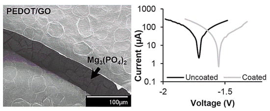 - Catt, K.; Li, H.; Cui, X.T. Poly (3, 4-ethylenedioxythiophene) graphene oxide composite coatings for controlling magnesium implant corrosion. Acta Biomater. 2017, 48, 530–540. [Google Scholar] [CrossRef] [PubMed]