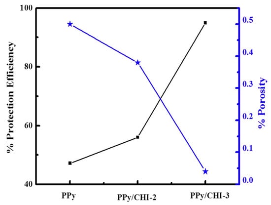Protection efficiency and porosity results for PPy and PPy/GO nanocomposite-coated Ti [102]. PPy = polypyrrole; Ppy/GO = polypyrrole/graphene oxide. Reproduced with permission from Springer.
