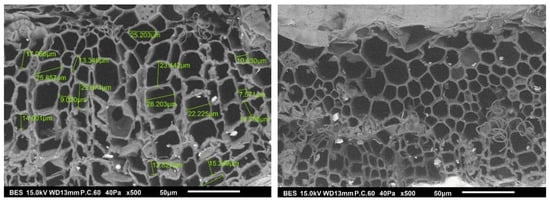 From a microstructural scale, flax shives show a cellular structure with a diameter ranging from 10 to 28 µm as shown by MEB analysis (Figure 3). From a macro scale, samples show a regular size distrubution ranging from 0.8 to 1mm, according to the particle size analyzer (not presented here).