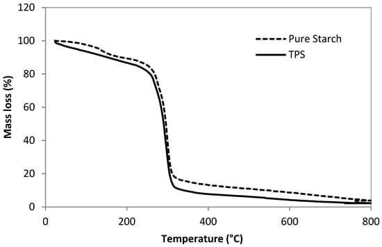 Figure 10. Thermogravimetry analysis (TGA) for native starch and TPS.
